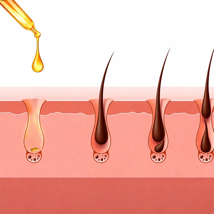 A breakthrough hair regrowth molecule that targets hair follicle stem cells in the bulge area, helping to restart hair growth at the cellular level.